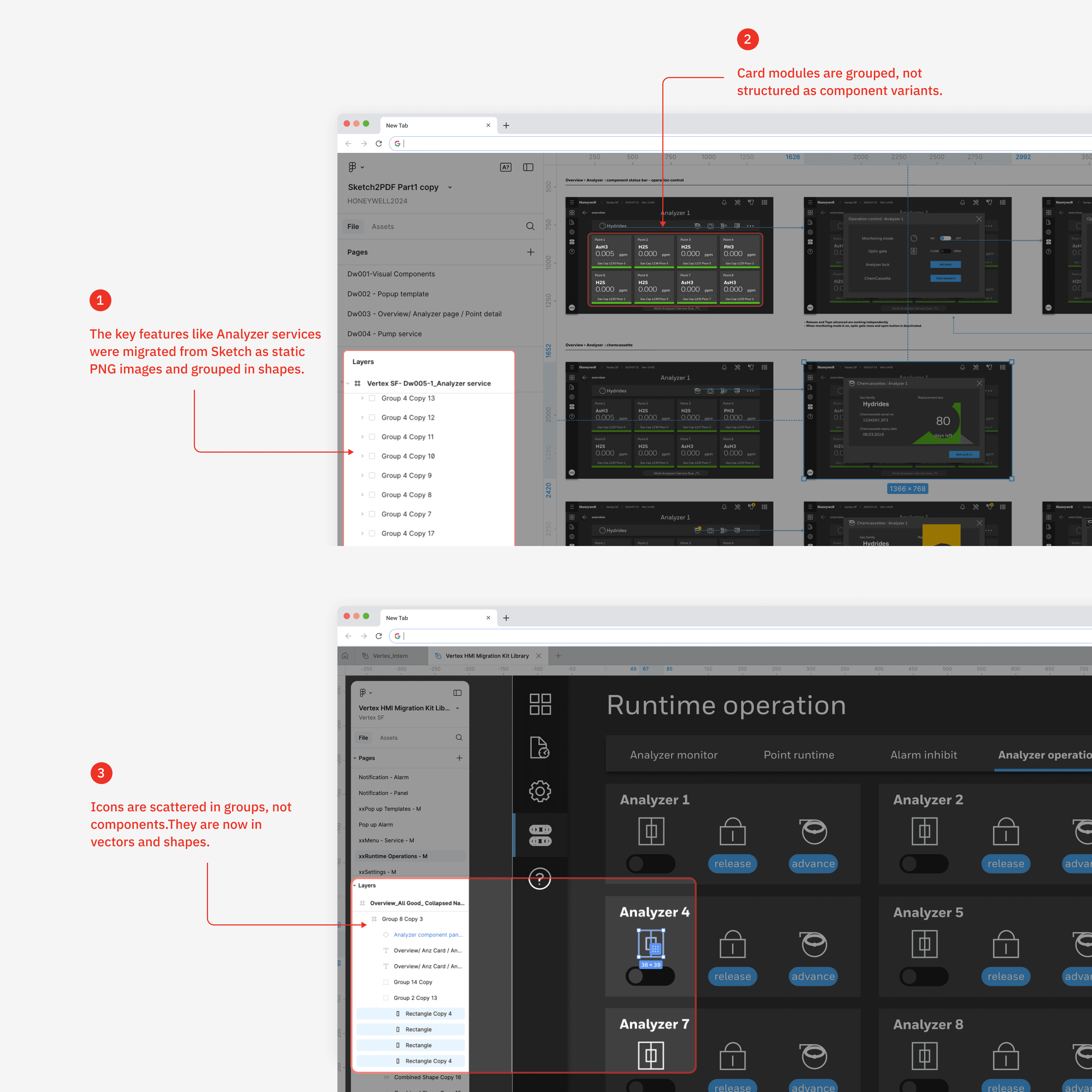 To reduce development time for the Legacy UI revamp, the team decided to use the Vertex product family’s existing UI components. The newer Vertex models had their components originally created in Sketch, but the migration to Figma was never successfully completed, leaving the system fragmented.
