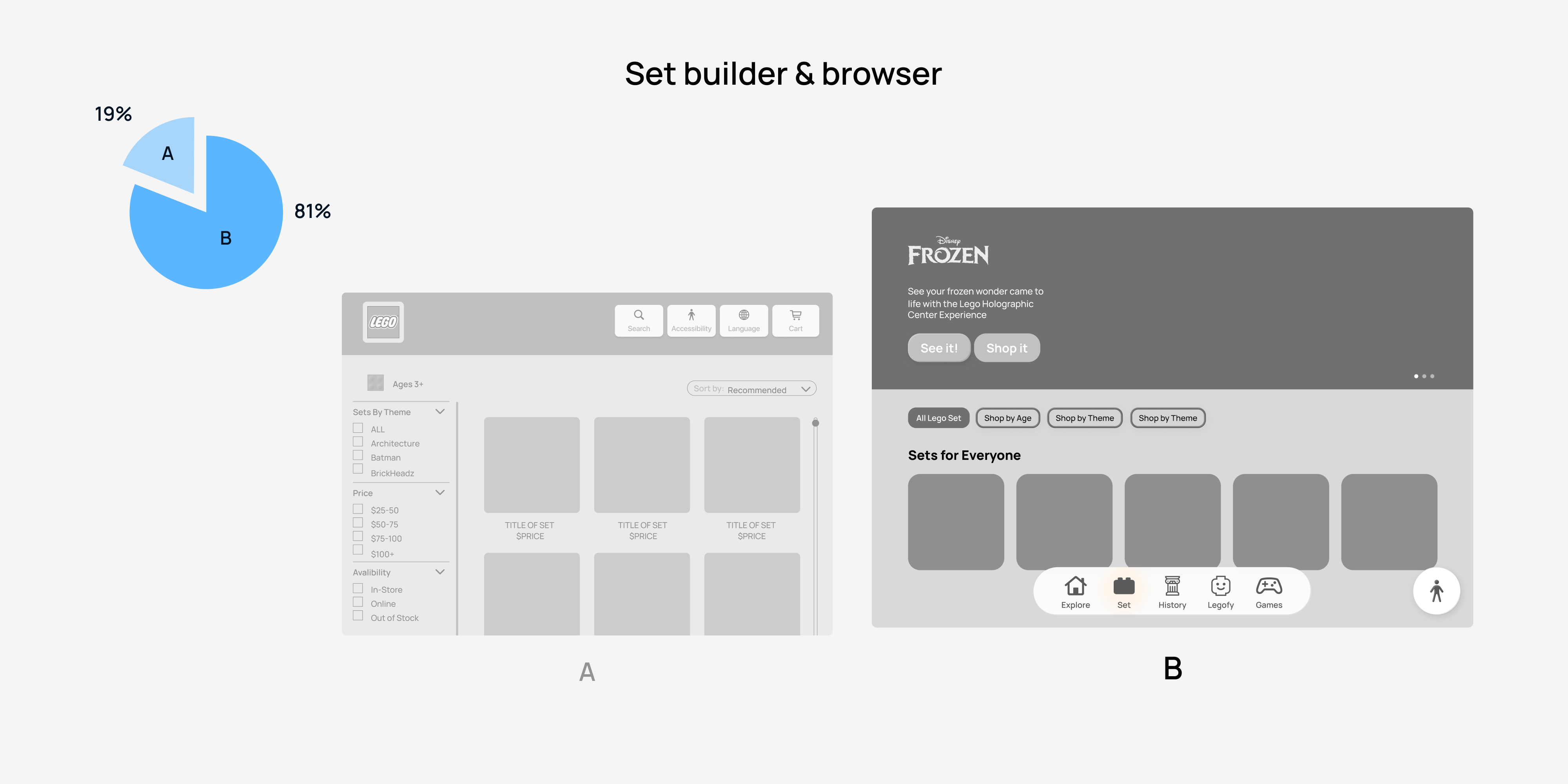 Before shifting to high fidelity prototype, we ran proctored A/B testing with 16 participants, 4 pairs of